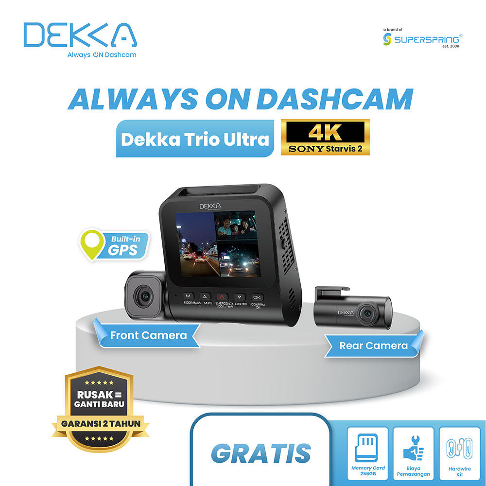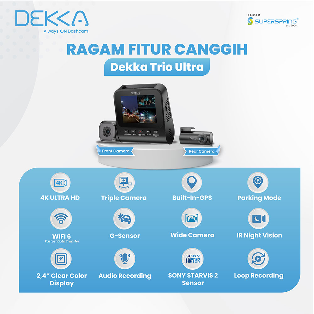 DK 10 DK 20 DK 21 DK 25 DK 40 DK 50 DK 10 DK 20 DK 21 DK 25 DK 40 DK 50 DEKKA TRIO ULTRA DK 50 Rp. 3.600.000 Order Langsung Order via Tokped Order via Shopee 24/7 Recording with 3 Camera4K FRONT CAMERA, 1080p REAR CAMERA & 1080p CABIN CAMERAG-SENSORNIGHT VISIONWIFI 6 Next Gen – Fastest data transferMICROPHONE-Record AudioLOOP RECORDING2,4″ CLEAR COLOUR DISPLAYWIDE CAMERABUILD-IN-GPSMEMORY CARD128 GBHARDWIRE-KIT G-Sensor Otomatis merekam saat terjadi guncangan tanpa khawatir file terhapus. Parking Mode Tetap merekam video saat kondisi terparkir ataupun mesin kendaraan mati. Night Vision Hasil rekaman akan tetapjernih saat malam hari.